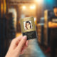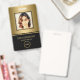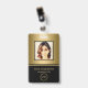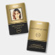 Negócios de foto modernos com foto em um fundo dourado e logotipo. Informações adicionais podem ser adicionadas no verso deste crachá de identificação profissional