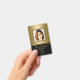 Negócios modernos de fotografia com foto em fundo dourado e logotipo. Informações adicionais podem ser adicionadas no verso deste crachá de identificação profissional