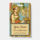 Nesta imagem detalhada de uma esplêndida gravura devocional suíça neogótica, Santa Cecília de Roma (século III) é retratada tocando um órgão de tubos vertical contra um fundo aqua com padrão de pontos dourados e estrelas. Seu longo cabelo ruivo cai solto e se espalha pelos ombros e pelas costas. Ela usa um vestido medieval de cor creme forrado de verde sobre um saiote laranja-avermelhado escuro. O vestido tem decote quadrado e mangas em sino. + Apesar de seu voto privado de virgindade, Santa Cecília foi forçada a um casamento arranjado com um pagão chamado Valeriano. Durante as festividades, diz-se que Santa Cecília “cantou em seu coração ao Senhor” em vez de se divertir; daí, sua patronagem de músicos (especialmente organistas) e cantores. O casamento nunca foi consumado. O que aconteceu, em resumo, é que seu novo marido, tendo visto uma aparição do anjo que guardava a virtude de sua esposa, se converteu ao cristianismo e respeitou seu voto. + Epílogo: Santa Cecília, seu marido São Valeriano e seu cunhado São Tibúrcio foram todos martirizados. Mas essa é uma história para outro dia! + Festa: 22 de novembro + Crédito da imagem (BNG 02): Detalhe de uma imagem neog