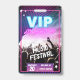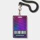 Crachá divertida de eventos de neon. Nosso design apresenta uma paleta de cores rosa brilhante e roxa divertida. O crachá perfeito para concertos, festivais de música, festas de eventos empresariais, etc. Personalize com sua foto, código de barras, data, local e site.