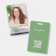 Um simples design apresenta um crachá de fotos de funcionários com nome e título, perfeito para corporações, segurança personalizada, perfeito para funcionarios de profissionais de negócios, com um código de barras QR, material de escritório padrão, com um fundo verde básico mínimo simples, limpo básico, evento de apresentação comercial.