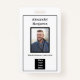 Nome da foto do funcionário Logotipo ID de código de Bar Cartão de Crachá moderno para proprietários de empresas, profissionais, voluntários e outros trabalhadores. Substitua a fotografia e as informações pela sua para cada pessoa na sua instituição ou empresa.