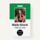 Nome da foto do funcionário Logotipo Código do Bar Crachá preto verde e branco. Para mais personalização, clique no botão "Personalizar" e use nossa ferramenta de design para modificar este modelo.