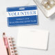 Este crachá de identificação de um voluntário apresenta um fundo azul sólido. O título "Voluntário" é impresso sobre uma faixa branca em texto azul para que o título seja facilmente visível. Você pode personalizar o crachá de ID para incluir seu próprio nome comercial ou de organização ou outro texto personalizado.
