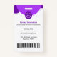 Faça uma declaração profissional com este crachá na moda, moderno, perfeito para o enfermeiro. Este modelo apresenta um design limpo com campos personalizáveis para sua foto, nome, título (NP), departamento (por exemplo, Sala de Emergência, ICU) e número de ID. O elegante esquema de cor roxa e branca adiciona um toque de profissionalismo. O backside opcional inclui espaço para informações essenciais de contato (telefone, email, endereço) e um código de barras para segurança adicional. Personalize-o facilmente com seu logotipo, nome do hospital e detalhes. Esta é a solução perfeita para enfermeiras registradas, instalações de saúde, hospitais e lares de terceira idade.