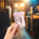 fundo rosa rubor,. Decorado com confetes. Um crachá, etiqueta de nome para grandes eventos, como aniversários marcantes, casamentos, convenções ou feiras de negócios. Adicione uma foto e um nome.