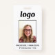 Crachá de fotos simples e moderno para identificação de negócios corporativo. Espaço para o logotipo da sua própria empresa, fotos e texto personalizado na frente e atrás, que podem ser todos alterados ou excluídos de acordo com os requisitos da sua própria empresa. Design minimalista e inflexível.