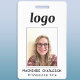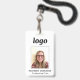 Crachá de fotos simples e moderno para identificação de negócios corporativo. Espaço para o logotipo da sua própria empresa, fotos e texto personalizado na frente e atrás, que podem ser todos alterados ou excluídos de acordo com os requisitos da sua própria empresa. Design minimalista e inflexível. Crédito da fotografia: Fotografia © Storytree Studios, Stanford, CA