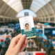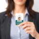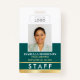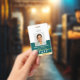 Crie uma aparência profissional com este crachá personalizado de identificação de funcionarios. Um modelo simples e na moda com sua foto de ID, nome, cargo, número do funcionário, logotipo da empresa e código de QR digitalizável. Todo o texto pode ser personalizado ou excluído para atender às necessidades de sua empresa. Este design elegante serviria a muitos locais de trabalho e profissões diferentes, incluindo vendedores a retalho, funcionários de restaurantes e alimentos, funcionarios de escritório, pequenas empresas, nomes de etiqueta de conferências e muito mais! Cores impressas: verde e branco com gradiente dourado.