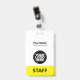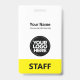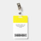 Personalize facilmente este Crachá de nome profissional administrativo personalizado sem fotos, com o Código de Bar de Digitalização e o logotipo de grande empresa. Um simples design de negócios em cores amarelas e brancas, neutras em termos de gênero, totalmente personalizáveis nos tamanhos frontal e traseiro, fontes básicas e modernas sans-serif e uma aparência profissional e clara, perfeita para funcionários de pequenas empresas, patrão, convidados. Estes crachás de identificação de negócios estão disponíveis com ferro-velho, clipe metálico ou com retratável. Não há ordem mínima, mas economize dinheiro e desfrute dos descontos Zazzle por várias ordens!