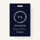Este é um design moderno, monograma, marinho e nome comercial personalizado prateado para ID de crachá. Este simples design de na moda está no marinho clássico e prata com script de tipografia na moda. Você pode manter o logotipo do monograma ou adicionar seu próprio e o modelo está configurado para que você simplesmente adicione suas iniciais do monograma (ou logotipo), nome do funcionário, cargo e nome comercial. Ideal para um nome de etiqueta profissional, mínimo e elegante de marca personalizada. Para personalizar, basta adicionar seus detalhes usando a caixa personalizar este texto. Para alterar a cor ou a fonte, dê uma olhada na ferramenta de edição de design. Se você precisar de ajuda com a personalização, produtos correspondentes ou para um projeto personalizado, entre em contato comigo via zazzle char ou email: ursuladawnmoon@gmail.com