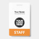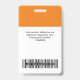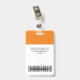 Personalize facilmente este Crachá de nome profissional administrativo personalizado sem fotos, com o Código de Bar de Digitalização e o logotipo de grande empresa. Um simples design de negócios em cor laranja e branca totalmente personalizável em tamanhos frontais e traseiros, fontes básicas e modernas sans-serif e uma aparência profissional e clara, perfeita para funcionários de pequenas empresas, patrão, convidados. Estes crachás de identificação de negócios estão disponíveis com ferro-velho, clipe metálico ou com retratável. Não há ordem mínima, mas economize dinheiro e desfrute dos descontos Zazzle por várias ordens!