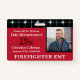 Nome personalizado de bombeiro Logotipo ID Crachá de cartão para departamentos de bombeiros, bombeiros, outros trabalhadores, empregos, profissionais e empresas. Substitua a fotografia e as informações pela sua para cada pessoa. Substitua também o chapéu de incêndio que está na placa para o seu logotipo ou imagem que for apropriado.