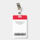 Personalize facilmente este Crachá de Nome Profissional Administrativo Personalizado sem foto, com cópia fácil e cola o modelo de código qr, Código de Bar de Digitalização e logotipo de grande empresa. Um simples design de negócios em cores vermelhas e brancas totalmente personalizável em tamanhos frontais e traseiros, fontes básicas e modernas sans-serif e uma aparência profissional e clara, perfeita para funcionários de pequenas empresas, chefe, convidados. Estes crachás de identificação de negócios estão disponíveis com ferro-velho, clipe metálico ou com retratável. Não há ordem mínima, mas economize dinheiro e desfrute dos descontos Zazzle por várias ordens!