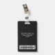 Personalize facilmente este Crachá de nome profissional administrativo personalizado sem fotos, com o Código de Bar de Digitalização e o logotipo de grande empresa. Um simples design de negócios com cores legal e brancas completamente personalizáveis em tamanhos frontais e traseiros, fontes básicas e modernas sans-serif e um visual profissional e claro, perfeito para funcionários de pequenas empresas, chefe, convidados. Estes crachás de identificação de negócios estão disponíveis com ferro-velho, clipe metálico ou com retratável. Não há ordem mínima, mas economize dinheiro e desfrute dos descontos Zazzle por várias ordens!