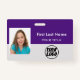 Crie seus próprios nomes de etiqueta e crachás personalizados usando um modelo elegante vertical moderno que é fácil adicionar sua própria foto, logotipo da empresa, Código do Bar e outras informações importantes. Um design de negócios simples em roxo e branco & nome e título com código de bar. Sem ordem mínima.
