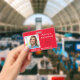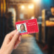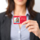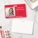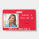 Crachá de Nome da Foto em Plano de Fundo Vermelho. Logo.