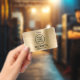 Placa de identificação metálica dourada moderna e falsa com o logotipo da sua empresa ou organização. Adicione um nome e cargo em tipografia simples.