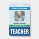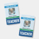 Cartões de identificação personalizados do professor. Personalize-o com o seu próprio texto, fotografia do perfil e cor de fundo.