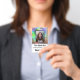 O design holográfico Faux brilha deliciosamente atrás de um modelo de foto com quadro preto e branco. Atualizar facilmente o nome e o título profissional de cada crachá de funcionário personalizado. Há também espaço para um código de bar de funcionário ou logotipo da empresa — excluir para deixar o vazio. A parte traseira apresenta cores de derramar de óleo mais indefinidas e uma modelo de imagem perfeita para outro logotipo da empresa (ou use este espaço para um código de bar). Disponível em muitos outros estilos e cores.
