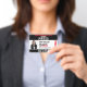 Cartão de imprensa preto e vermelho profissional com nome de crachá de ID personalizado e foto. Adicione qualquer nome de negócios e funcionário, foto, logotipo e código de barras. Visite meu compro para a coleção inteira de IDs e crachás de negócios.