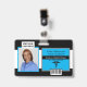 ID de Foto do funcionarios Médico. Adicione sua foto, nome, local comercial e código de digitalização a este Crachá fotográfico. Crachá azul e preto dos profissionais de saúde.