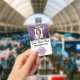 Mantenha-se profissionalmente com este crachá personalizável de ID de funcionário, projetado para enfermeiros, médicos e funcionarios médicos. A frente apresenta um design de tinta a álcool roxa e dourada marmoreada com um quadro fotográfico, nome e título em scripts elegantes e fontes de blocos, além de espaço para o logotipo da sua empresa. A parte traseira inclui um modelo de QR ou código de barras, endereço de retorno e fundo de mármore correspondente. Perfeito para enfermeiros viajantes ou profissionais de saúde com estilo.