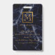 Crachá Notário do Monograma Dourado Quadrado Azul Elegant