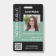 Crachá de horta preto de um notário funcionário de serviço público. ID público notário personalizado - um crachá de identificação elegante com seu código QR, foto, nome, cargo e outros detalhes - se necessário. Você pode mudar facilmente a cor dos elementos de design, basta ir para a barra de ferramentas e selecionar a cor de design desejada em uma das camadas. Fácil de personalizar com seus detalhes. Adequado também para gerentes, consultores, outros funcionários, executivos, funcionários de escritório e empresas de logística. Observe que as cores de fundo, fontes e tamanhos de texto estão sujeitos a alterações. Você pode carregar o logotipo ou o código de barras de sua empresa personalizada ou adicionar outras informações na parte traseira.
