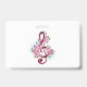 Clave de sol rosa com delicadas e detalhadas flores de cerejeira japonesas cor-de-rosa contra um fundo branco pintado com tinta azul clara. Flor de sakura cor-de-rosa em flor.