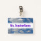 Características deste design do crachá uma foto das nuvens brancas e cinzentas, junto com o céu azul. Igualmente caracteriza um nome feito sob encomenda no texto colorido roxo dentro de uma banda colorida branco. Um crachá como este podia talvez ser vestido por um professor, por um professor, por um tutor ou por um professor durante as semanas adiantadas de um ano escolar ou de um curso. Pôde ajudar os estudantes a aprender e recordar o nome do seu professor. [~Z0000175]