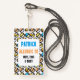 O costume caçoa o crachá dos símbolos da alergia do alerta da alergia de comida. Anexo através de uma correia, de um grampo do metal, ou de um grampo retrátil a um saco de livro, a um jogo da medicina ou para que uma criança vista-se. Personalize com suas alergias, informação do contato ou instruções da emergência. Mesmos projetam em ambos os lados. www.LilAllergyAdvocates.com