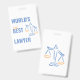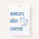 crachá "Para o melhor advogado segundo do mundo". Engraçado ideia de presente de colega sarcástico. Procurador/escritório de advocacia. Símbolo de escala de justiça desenhado à mão. Modelo (Você pode alterar as cores e o texto "segundo").