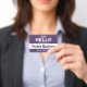 Personalize facilmente este personalizado básico "Olá, meu nome é" nome de funcionário e crachá profissional da empresa. Disponível com diferentes cores e anexos de fundo. Nenhuma quantidade mínima da ordem.