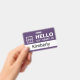 Personalize facilmente este crachá básico personalizado "Olá, meu nome é" do nome do funcionário da empresa. Disponível com diferentes cores e anexos de fundo. Nenhuma quantidade mínima da ordem.