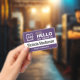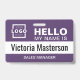 Personalize facilmente este personalizado básico "Olá, meu nome é" nome de funcionário e crachá profissional da empresa. Disponível com diferentes cores e anexos de fundo. Nenhuma quantidade mínima da ordem.