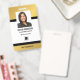 Ouro | Foto do Funcionário Personalizada, Código de Barras, Logotipo, Nome, Crachá, personalize esses crachás de luxo verticais dourados com uma foto e nome do funcionário, texto personalizado para número de identificação do funcionário, cargo ou título, localização ou outros dados importantes. Adicione seu logotipo abaixo.