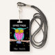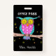 A faux chalkboard hall pass with an owl with huge flowery and beautiful eyes . Personalize it with a name and type of badge you want (hall pass , student pass , office pass , library pass , etc) I avoid adding a room number and school name to give the opportunity to teachers to take their passes with them when they have to relocate to a different school . It save them a few bucks :)