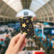 Padrão contínuo com estrelas douradas em fundo preto. Estrela dourada.