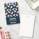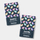 Crachá com um padrão lindo. Borboletas em aquarela, pintadas em cores pastéis, incluindo rosa, roxo, azul, amarelo e verde. Fundo em aquarela azul escuro.