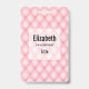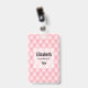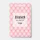 Nome de etiqueta com um belo padrão feminino. Padrão rosa macio em formas de diamante fofinhas com um talão de ouro no centro. Viva elegância de luxo.