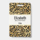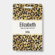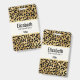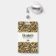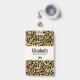 Crachá de nome personalizado com um padrão elegante. Exóticas manchas pretas de leopardo em um fundo dourado. Estilo selvagem e elegante.