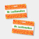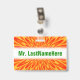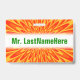 Este desenho de crachá vibrante, enérgico e atraente apresenta um padrão semelhante a uma explosão que irrompe apresentando cores como vermelho, laranja e amarelo. Também apresenta um nome personalizado em texto na cor verde dentro de uma área na cor branca. Um crachá como este talvez possa ser usado por um professor, educador, tutor ou professor durante as primeiras semanas do ano letivo ou de um curso. Isso pode ajudar os alunos a aprender e lembrar o nome do professor.