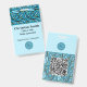 Crie um crachá de nome bilíngue personalizado e elegante com um lindo padrão azul de folhas de turquesa. O crachá inclui campos editáveis para o seguinte: Nome (Nombre) Título (Título) Organização (Compañía) Logotipo A parte traseira do crachá mostra o logotipo e um código QR, permitindo um acesso fácil a um site ou número de telefone. Esse design personalizável garante que todas as informações possam ser personalizadas de acordo com as suas necessidades, fornecendo um toque exclusivo e profissional. Pegue o seu agora!