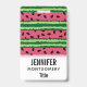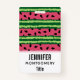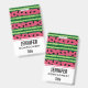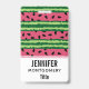 Um nome de etiqueta com um padrão de melancia fofo. Casca verde em camadas de listras junto com uma camada de listras cor-de-rosa com dentro de sementes pretas. Diversão e design de verão.