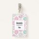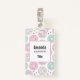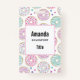 Nome de etiqueta com um padrão deliciosamente divertido. Ilustração de rosquinhas cor-de-rosa pastel e verdes com aspersão e gelo.