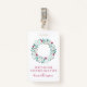 NewParkLane - Crachá de Casamento Floral Rústico Personalizado, com uma linda grinalda floral com folhas verdes e rosas cor-de-rosa em aquarela.