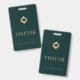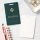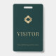 Acompanhe os visitantes e garanta o retorno de seus crachás com este simples crachá elegante de visitantes, com um rico fundo verde, tipografia de ouros e um logotipo prefeito de diamante de ouro que pode ser personalizado com seu logotipo. O design simples é profissional e perfeito para qualquer negócio ou evento.