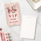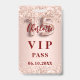 Um crachá VIP moderno, na moda e glamouroso para uma Quinceañera, festa de aniversário 15. Um fundo rosa dourado decorado com confete. Com o texto: VIP. Personalize e adicione o nome e os detalhes da festa.