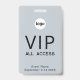 Crachá de acesso total VIP de evento corporativo simples e moderno. Espaço para o logotipo da sua empresa e texto personalizado na frente e verso, que podem ser alterados ou excluídos para atender às necessidades da sua empresa. Design minimalista limpo e sem frescuras em azul pó.
